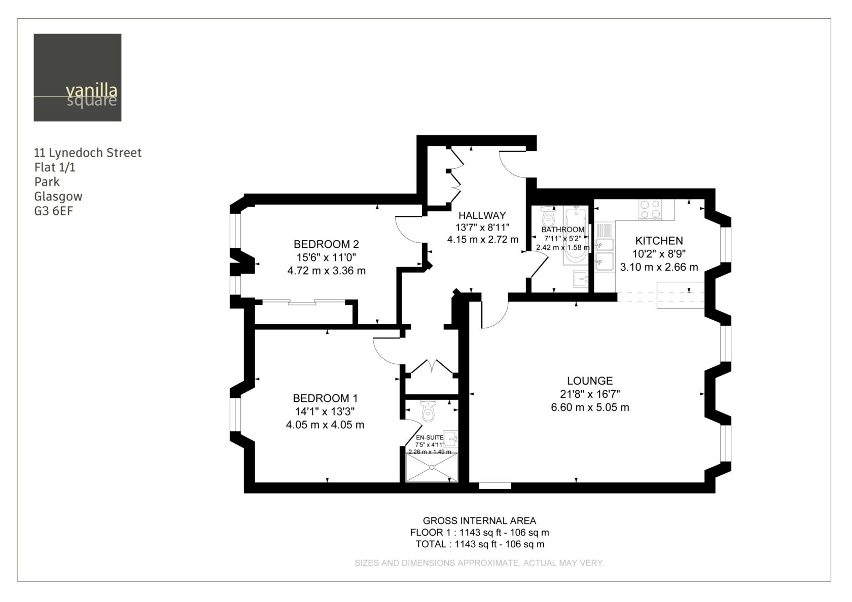The internal accommodation comprises; broad and welcoming entrance hallway with two storage cupboards off, immediately impressive 21’8 open plan lounge/ kitchen with large windows to front that flood the space with natural light throughout the day. The kitchen has high quality wall and floor units and integrated appliances and there is plenty of room for a dining table and chairs – this is a great space for entertaining. Both well proportioned double bedrooms are set to the rear of the building away facing onto the Mews Lane and the principle bedroom has a beautiful en-suite shower room. Completing the accommodation is a guest bathroom with fresh white three piece suite and over-bath shower.